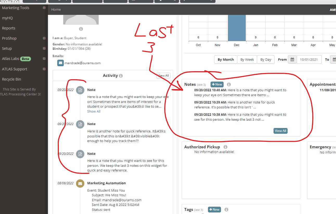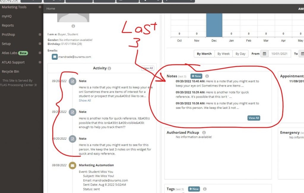 For the notes if you had some way to separate notes so that only the ones entered by personnel showed it’d cut down on a ton. Then any automated notes wouldn’t show. There’s only so many times you need to see “marketing automation” or “email”. For me at least the only relevant notes would be ones manually entered by staff. For the rest you just need a column that shows the date of the last automated email or text since those are usually triggered by dates.